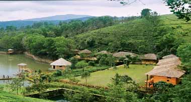 Thekkady is located about 257 km (160 mi) from Trivandrum, 141 km from Madurai City and Madurai Airport, 145 km from Cochin International Airport and 114 km from Kottayam railway station. Thekkady is located near to Kerala-Tamil Nadu border. The sanctuary is famous for its dense evergreen, semi-evergreen, moist deciduous forests and savanna grass lands. It is home to herds of elephants, sambar, tigers, gaur, lion-tailed macaques and Nilgiri langurs.The Periyar Wildlife Sanctuary is spread across 777 km2 (300 sq mi), of which 360 km2 (140 sq mi) is thick evergreen forest. The wildlife sanctuary was declared a tiger reserve in 1978.
